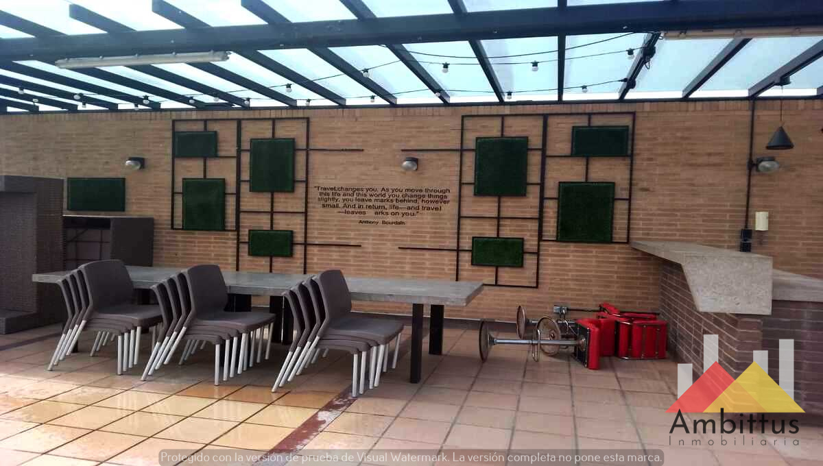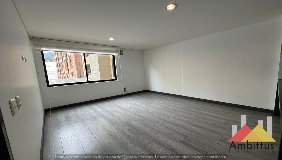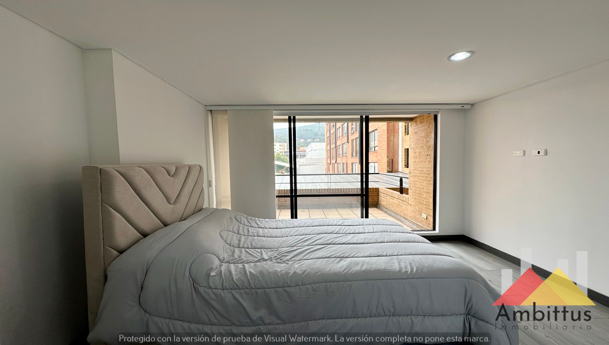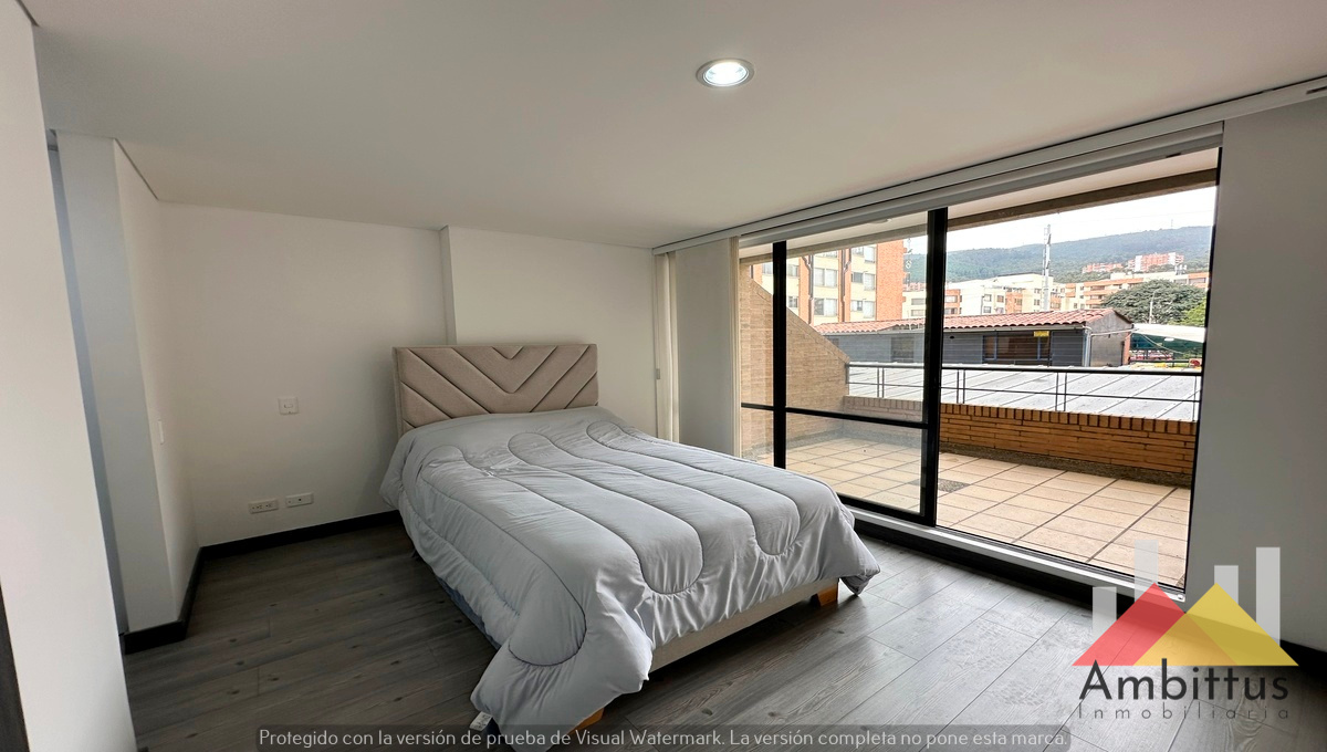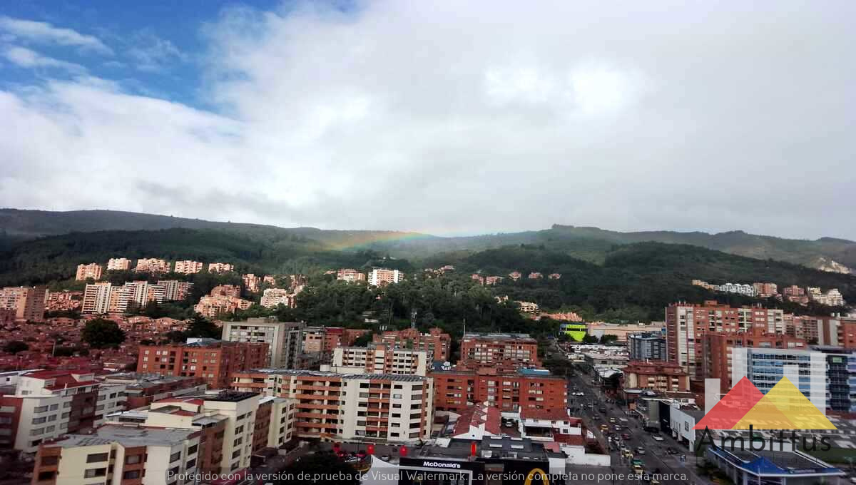 Apartamento con vista a los cerros orientales desde la zona social y la alcoba en Cedritos. Consta de 1 alcoba con su baño privado con ventilación natural, zona de estudio, sala-comedor amplio y cocina americana con mesón amplio que funciona como comedor. Adicional, cuenta con baño social, zona de lavanderia y garaje independiente. El edificio cuenta con sala de lectura, gimnasio, sala de niños, piscina, jacuzzi, turco, sauna, terraza comunal 360 grados y BBQ y parqueaderos de visitantes.
